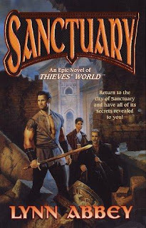 Sanctuary (see second image), I deduce that the two Cappen Varra stories and their sequel, "Fairy Gold," are set in this shared universe of the "Thieves' World." Cappen remarks that "'...Shalpa, patron of thieves...has the most devotees of any.'" (p. 114) (If Shalpa is indeed the patron of thieves, then he is a Thieves' World counterpart of Hermes and